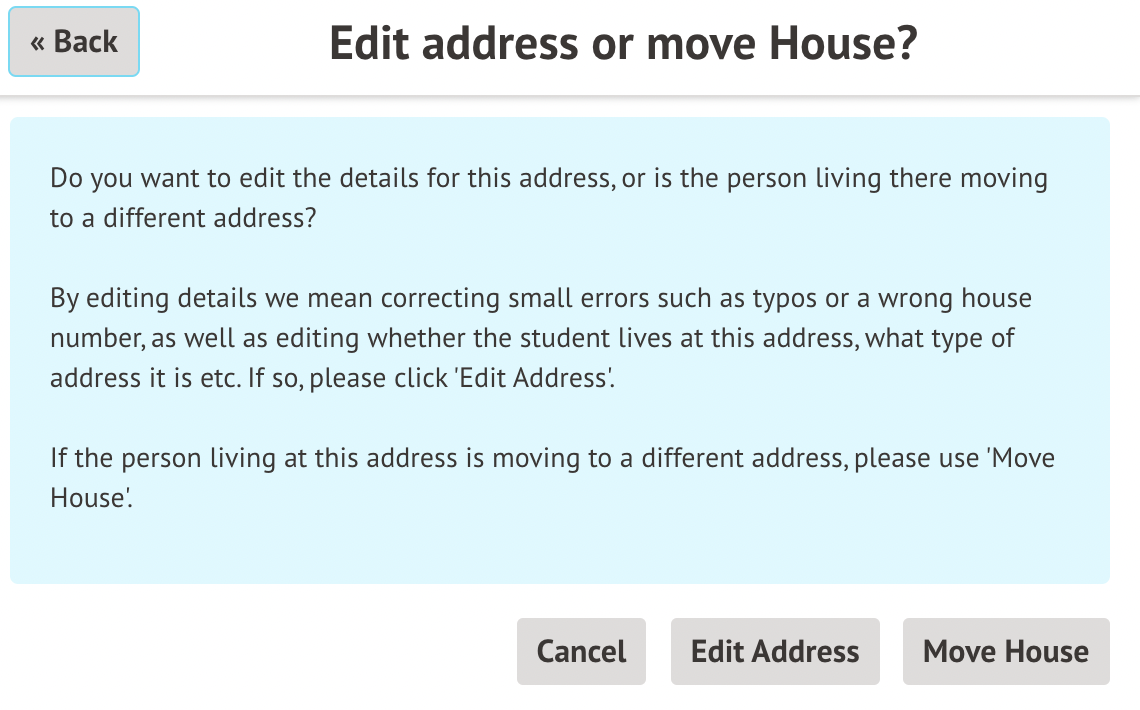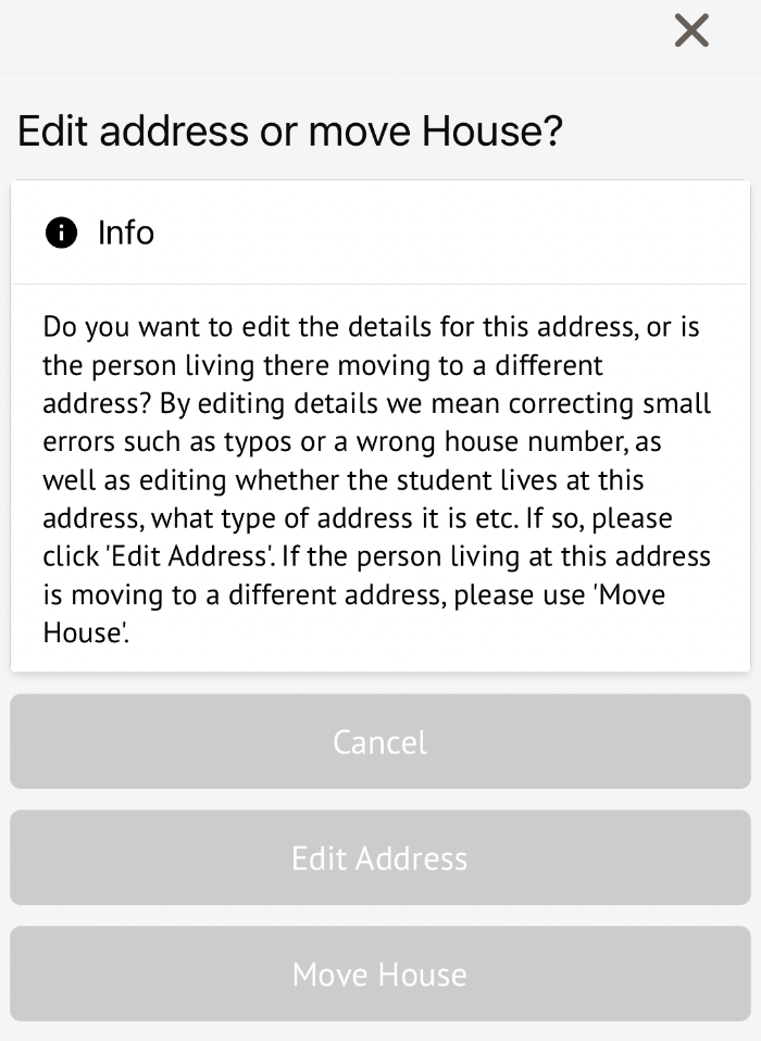 If you need to update your address, you can choose to either edit the address or mark that you've moved to a different address.