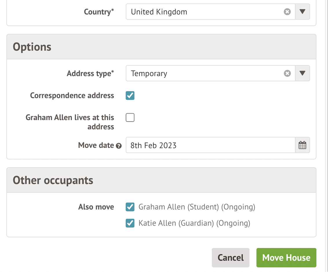 When you do this, you also need to select whether the changes also apply to anyone who is down as currently living with you.