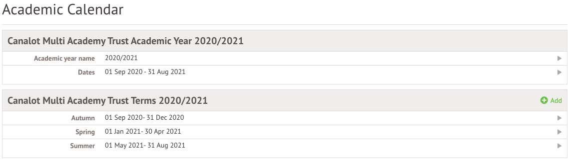 To enable you to roll out assessment frameworks and policies from MAT MIS, you’ll need to define the dates for your academic years. Within LA MIS, you can use this feature to define the academic years and terms you see within your MIS.