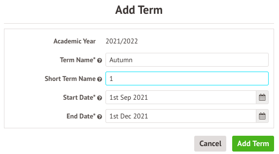 To enable you to analyse assessments on MAT MIS you’ll need to define the dates for your terms.