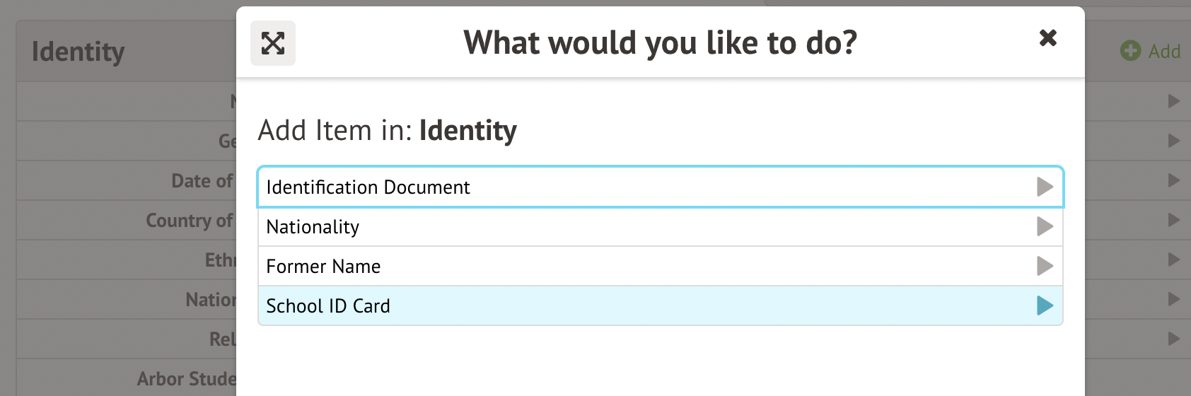 You can either click on the School ID card field, or click +Add and select School ID Card.