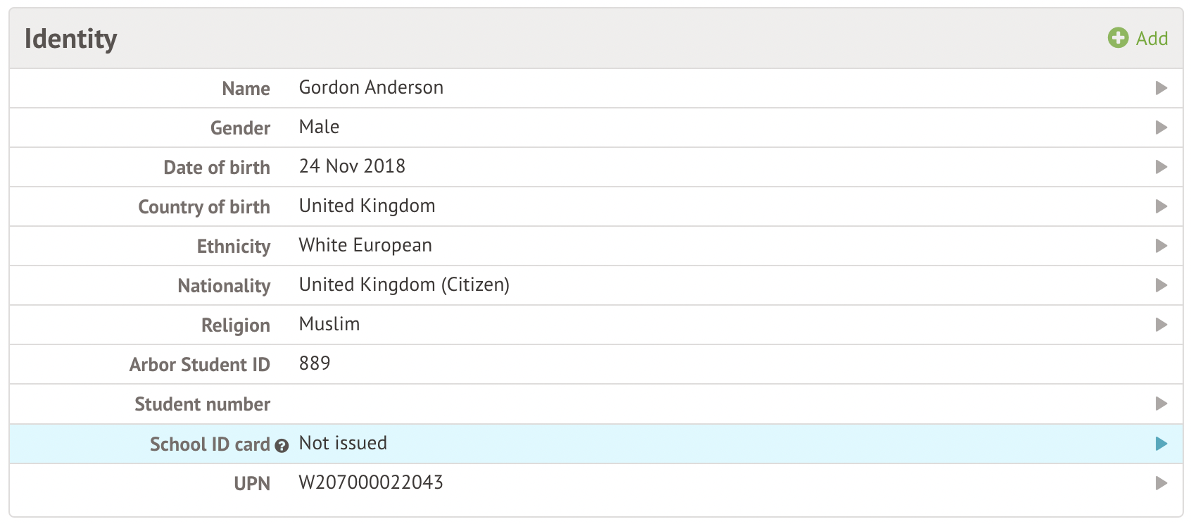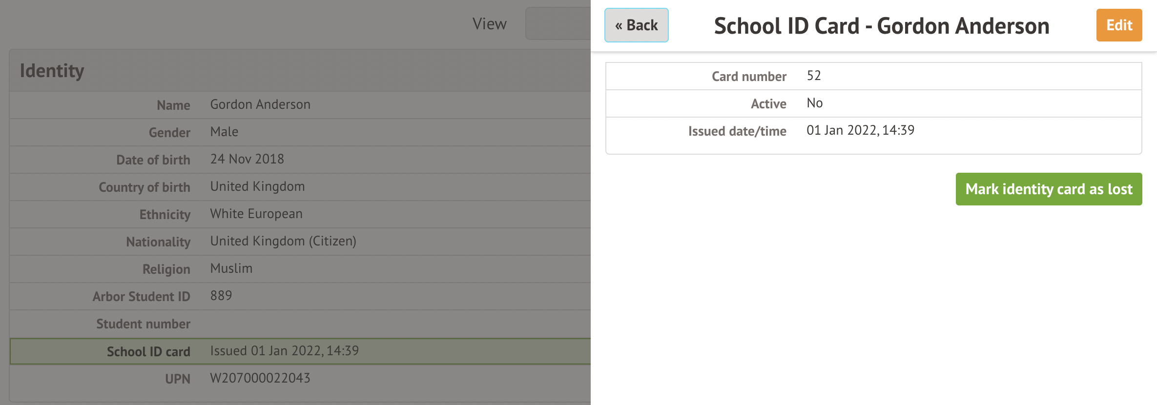 School ID cards can be found in the Identity section of student, guardian and staff profiles. This field is optional.