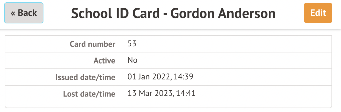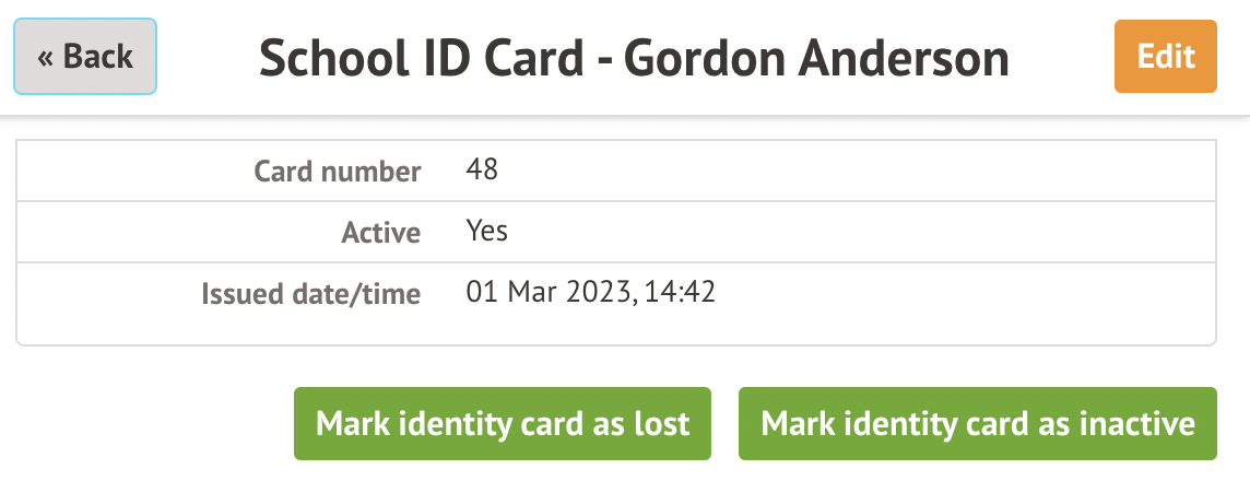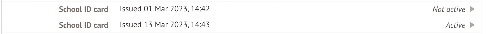 In this example, I've marked one ID card as inactive, because the child has been issued another.